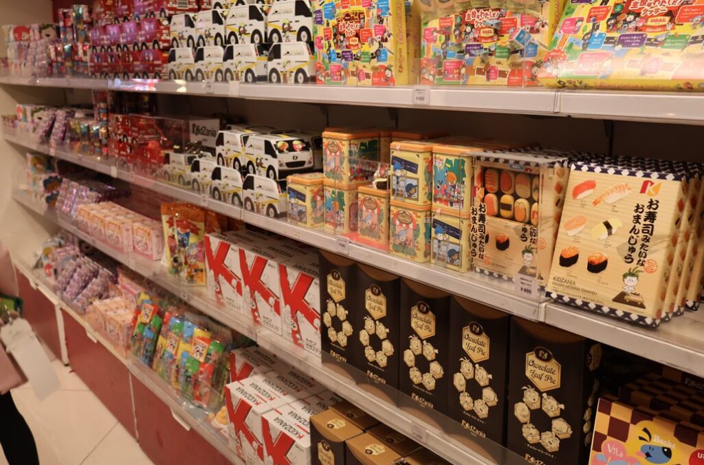 お土産屋さんには、キーホルダーなどの雑貨やお菓子が並んでいます。