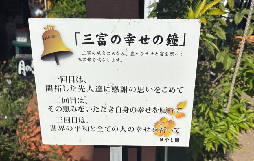 受付のそばにある鐘を鳴らしてみたり、さつまいもソフトクリームを味わったりしながら、のんびり待ちました。